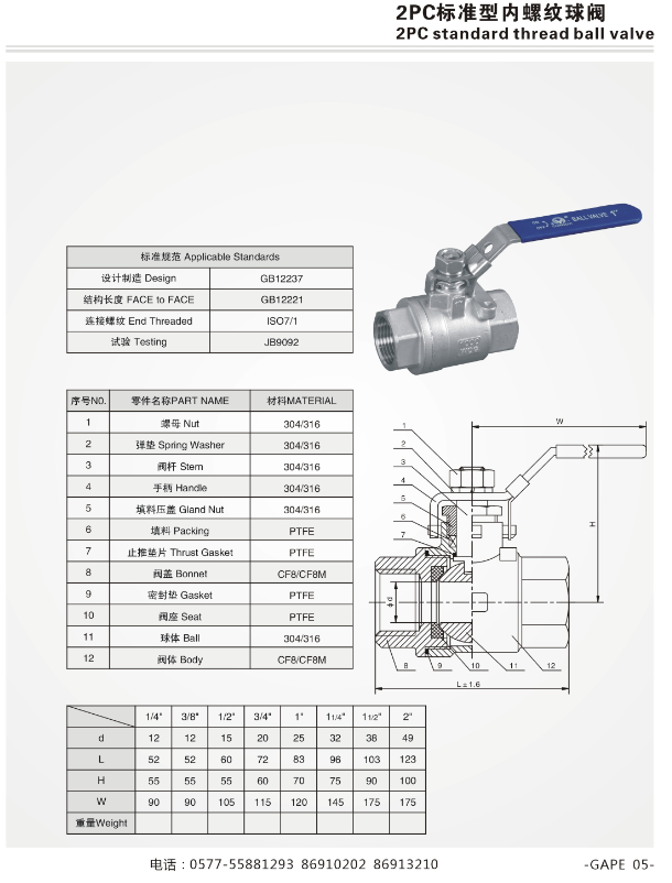 上一篇: 二片式內外螺紋球閥下一篇:沒有產品